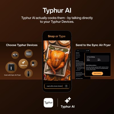 Typhur 8QT Sync Air Fryer with Built-in Wireless Meat Thermometer, 9-in-1 Smart Non Toxic Ceramic Airfryer for Quick Easy Meals